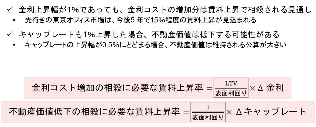 金利上昇幅が1%であっても、金利コストの増加はオフィス賃料の上昇で相殺される見通し