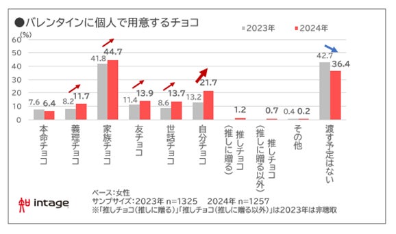 ・「渡す予定はない」が減り、「自分チョコ」をはじめ他も増えたのが要因