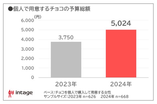 ・バレンタインの予算(女性)は平均5,024円。前年比134%で大幅増