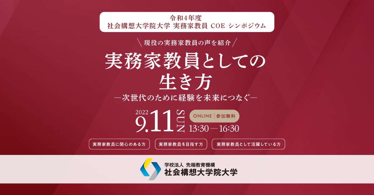 実務家教員養成課程 COEシンポジウム「実務家教員としての生き方」を9月11日(日)オンライン開催