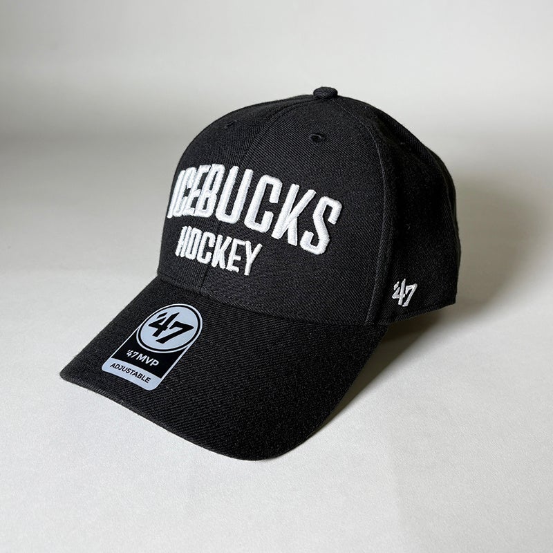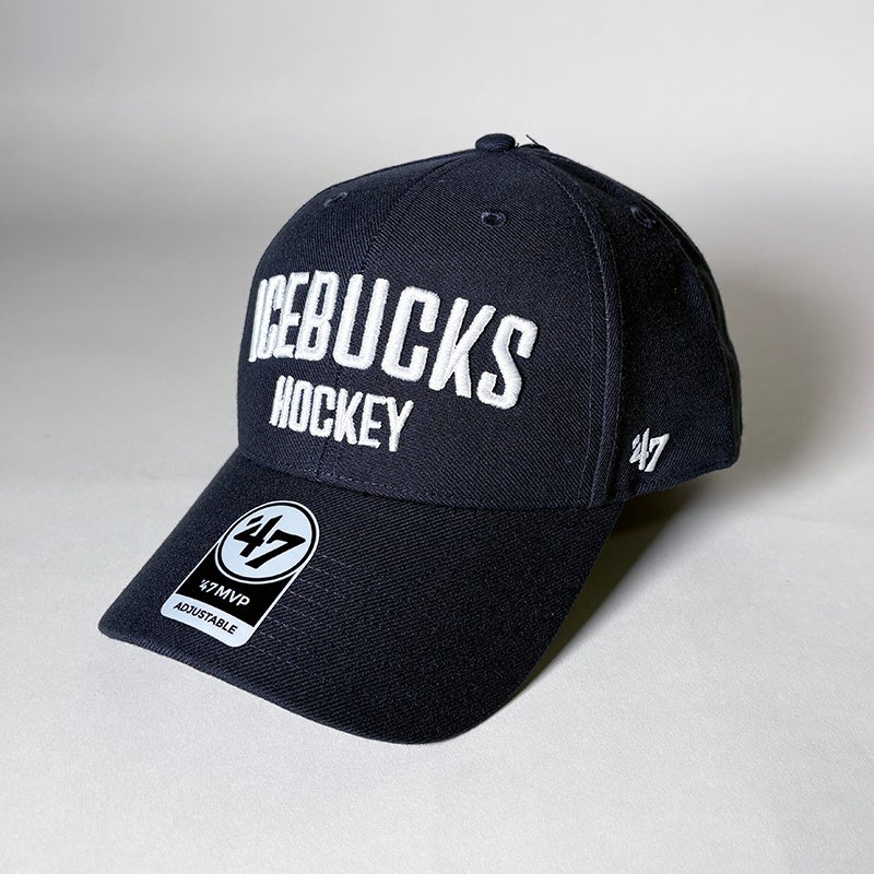 '47(フォーティセブン)製 キャップシリーズから、ツイル生地を使用したウインターモデル「MVPシリーズ」のボディに、「ICEBUCKS」と「HOCKEY」の文字をクラシカルなPFVフォントデザインで3D刺繍しました。