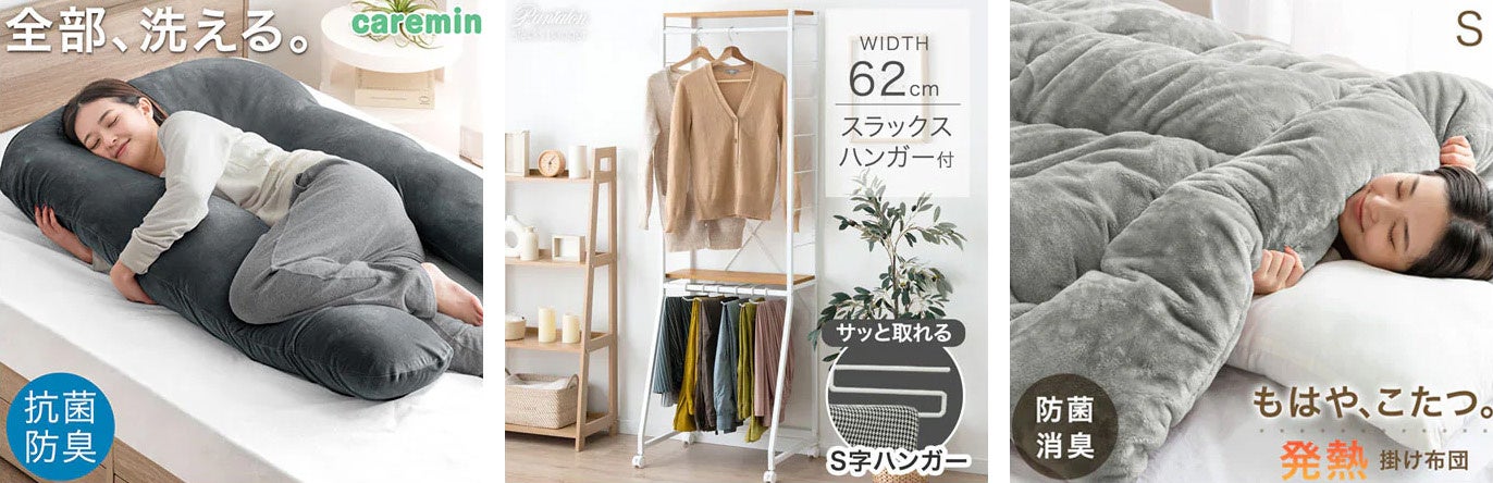 <予定商品例>定番人気アイテムから大型家具、冬物アイテムまで幅広いカテゴリの販売を予定しています。