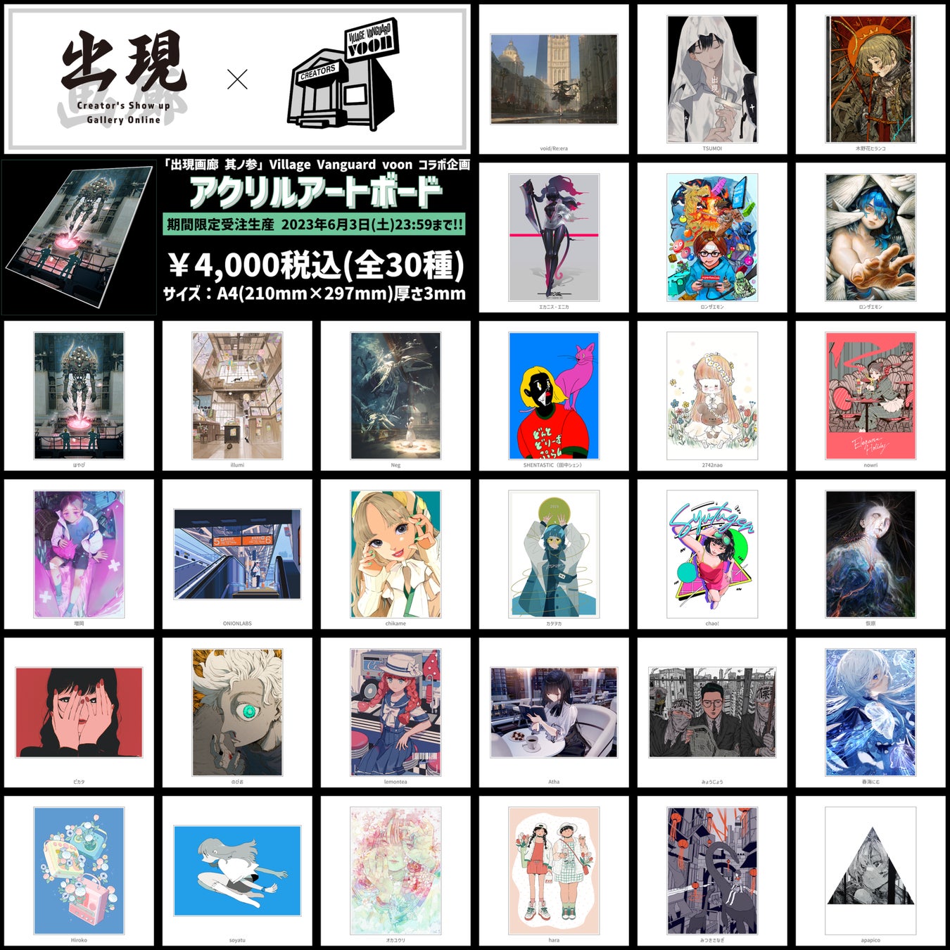 void/Re:era / カタヲカ / 衣湖 / 川澄晴紀 / 木野花ヒランコ / まもる / ZQ / 金井昌未 / とみながしんぺい / Neg / miki / 犀将 / 大司花月 / 倉田明佳 / 屑 / 古都リネ / Kaylee Koo / daikichi / 夏目らん / REO / 福宇地 / hara 冬寄 かいり / te'(て) / 寿なし子 / のびお / 天秤ビト / 真紗弥 光一 / nowri / ただちしゅんた / みょうじょう / Gabriella Leighton / PONKO / あきたあもう / OYK / 春海にむ / SHENTASTIC(田中シェン)/ ara / Daken / 擦主席(ChairmanCa)(SOMSOC Gallery) / ウエオカケンタ / 水越みかん / ドジ / ゆうき / ノInH / タミウラ / NEMU / トミダトモミ / みつきさなぎ / 佐久間友香 / ロンザエモン / さとざき幸 / Kei Kawakami / もん / 津島ソラ / 杉田まがり / 庭野リサ / NOU4 / 広く。 / 副島智也 / 東西南 アカリ / まいじ / 久嶋祐太 / オツザカ / fracoco / kei saito / 帳 はるをし / 秋山雅貴 / 毛ェ / Q / 宮内 素 / 小夜子 ※順不同