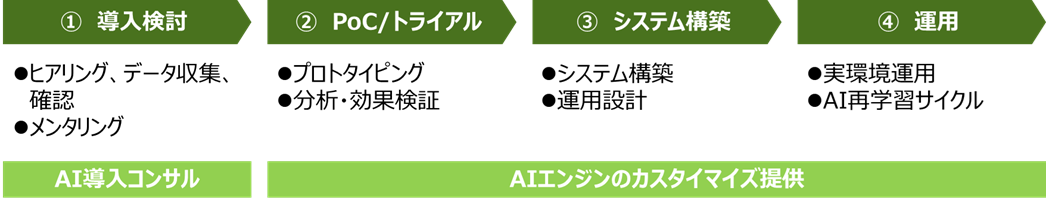 ①導入コンサルティングからAI開発まで一気通貫したソリューション提供