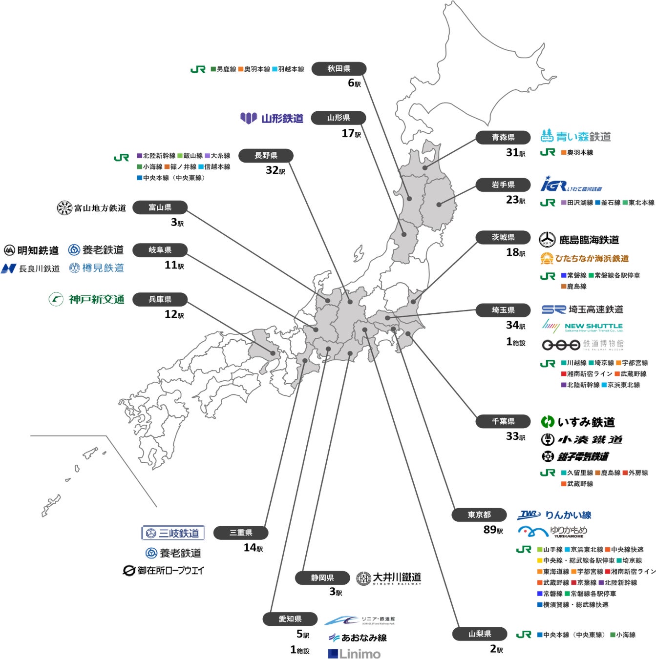 【導入数:26事業者/55路線/333駅/2施設】