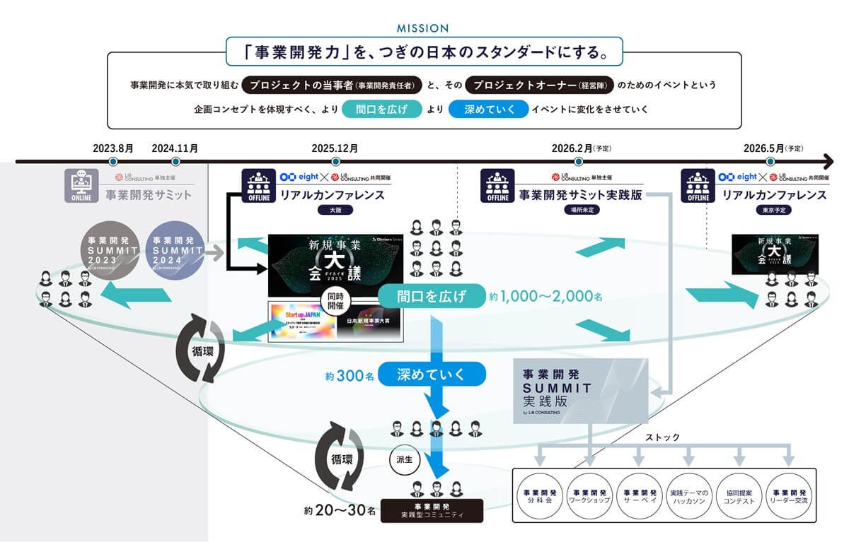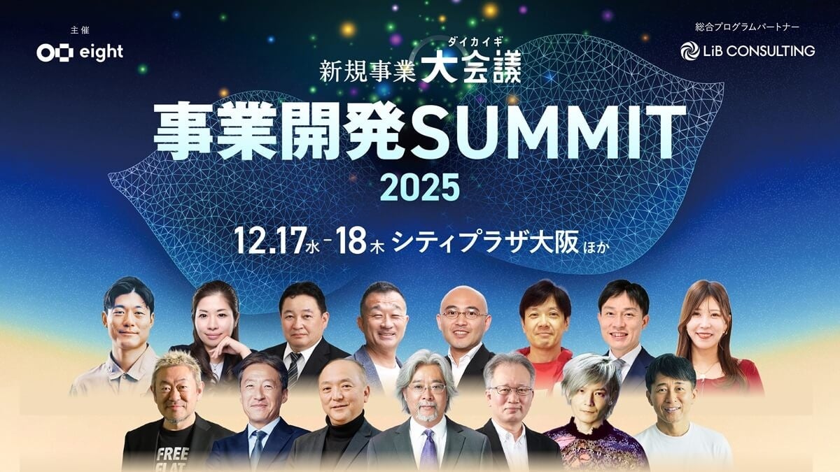 大企業やベンチャー・スタートアップの事業開発に強みを持つ株式会社リブ・コンサルティング(本社:東京都千代田区、代表取締役:関 厳)は、12月17日(水)、18日(木)の2日間、 Sansan株式会社の名刺アプリ「Eight」が主催する、業界のトップリーダーが集う新規事業イベント「事業開発 SUMMIT 2025 by 新規事業 大会議 2025 in 大阪」において、総合プログラムパートナーとして参画いたします。
