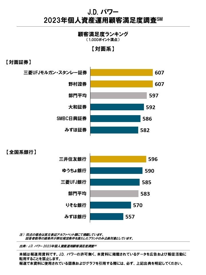 CS(顧客満足度)に関する調査・コンサルティングの国際的な専門機関である株式会社J.D. パワー ジャパン(本社:東京都港区、代表取締役社長:山本浩二、略称:J.D. パワー)は、J.D. パワー 2023年個人資産運用顧客満足度調査℠の結果を発表した。