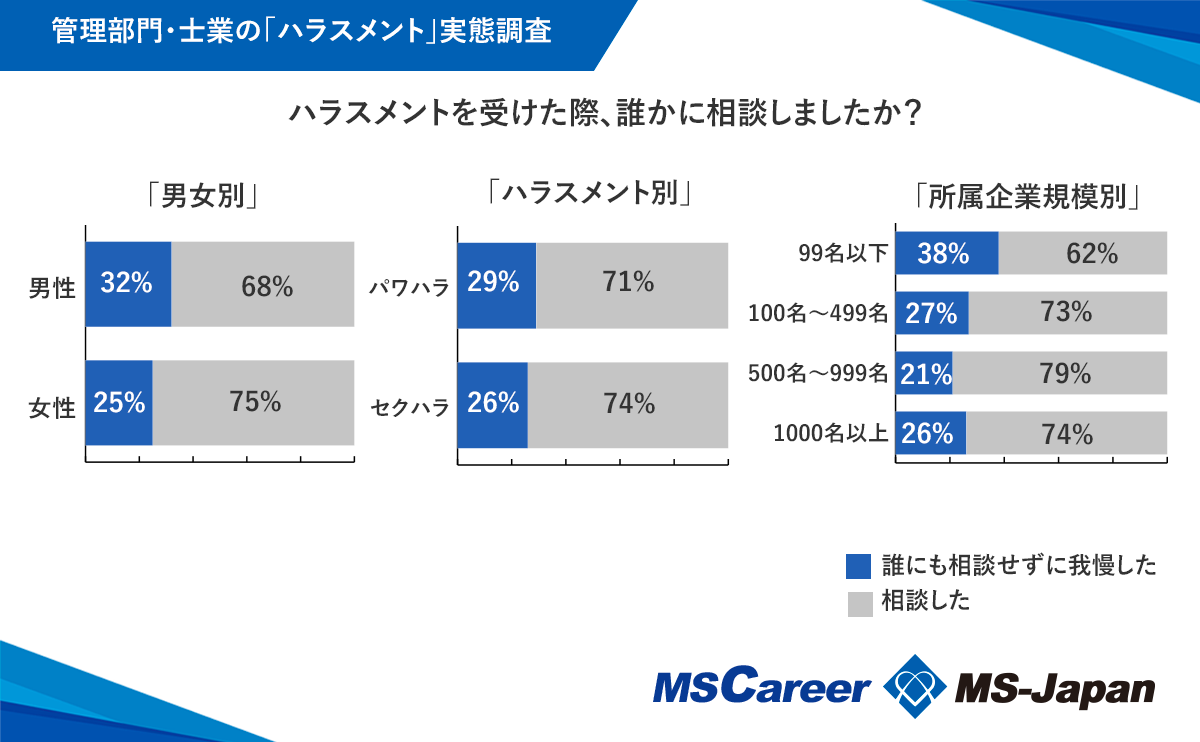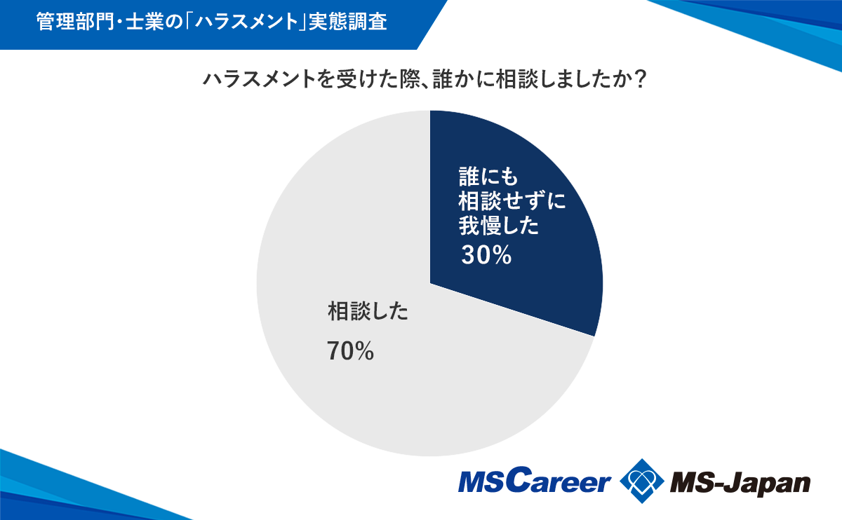 【3割がハラスメントを「誰にも相談せず我慢」】