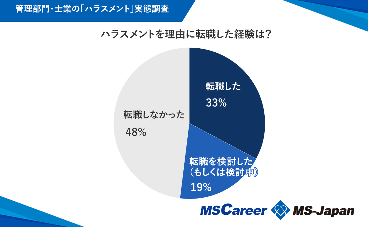 【ハラスメントきっかけで過半数が転職/転職を検討】