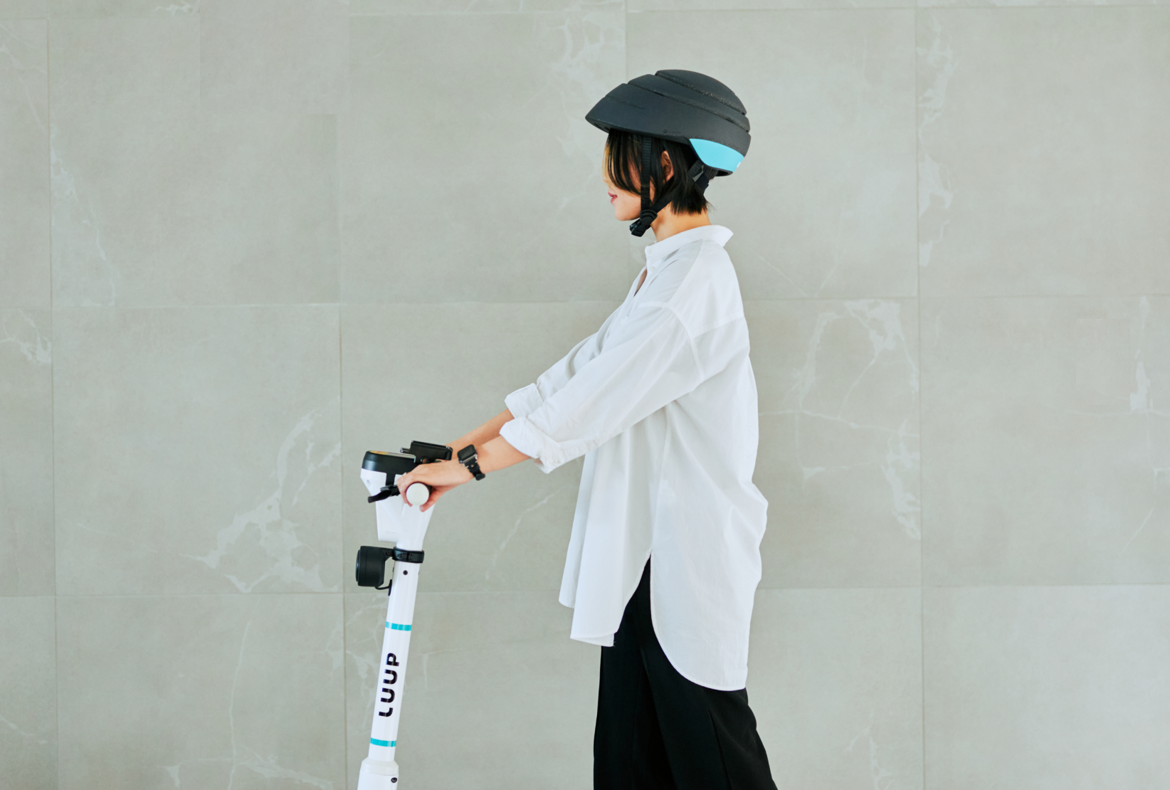 自転車や電動キックボードに乗る際の乗車用ヘルメット着用は、頭部を守り、交通事故時の被害軽減効果があると言われています。LUUPでも自転車・電動キックボードともに、努力義務化の以前からアプリやSNSにて着用を推奨しており、関係省庁と協議の上で、アプリ内にてヘルメット購入ページ(外部Webサイト)への導線を設けてまいりました。一部のエリアではポートでのヘルメット貸し出しを試験的に導入しましたが、残念ながらその利用率は低く、頭部に装着するものを共用することに対する衛生面の懸念の声が大きいこと、そして盗難される可能性があることから、シェアリングサービスにおけるヘルメットの提供は難しさが伴いました。