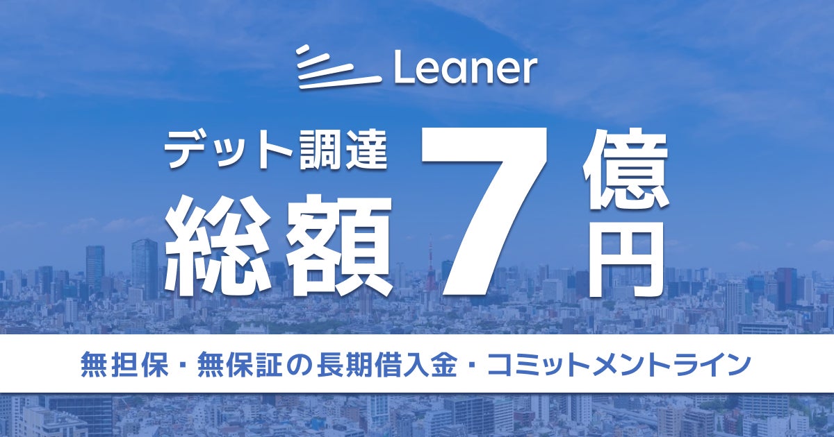 株式会社Leaner Technologies(本社:東京都品川区、代表取締役CEO:大平 裕介、以下「リーナー」)は、商工組合中央金庫、みずほ銀行、三井住友銀行、三菱UFJ銀行、りそな銀行より、無担保・無保証かつ株式の希薄化を伴わないデット調達として、長期借入及びコミットメントラインによる総額7億円の資金調達を実施いたしました。