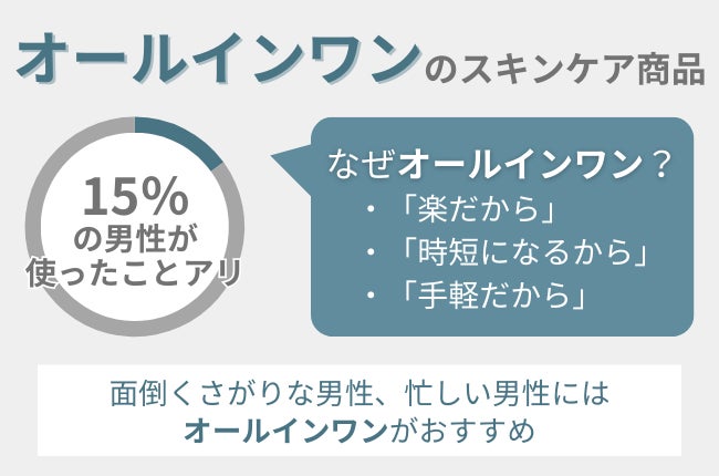 このような点から、オールインワンアイテムは「面倒くさがりな男性」「忙しい男性」におすすめです。