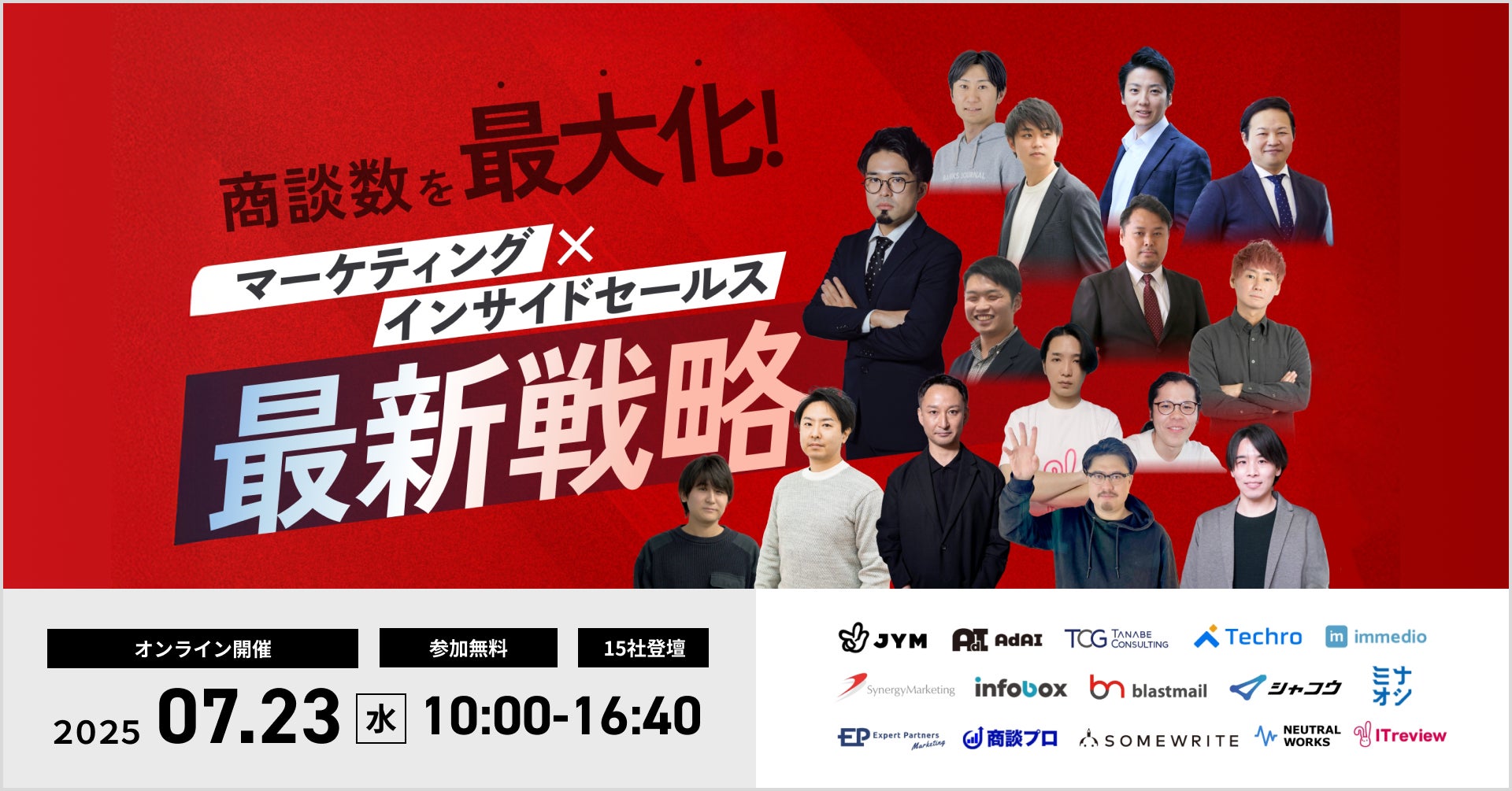 シナジーマーケティング株式会社(所在地:大阪市北区、代表:奥平 博史、以下:当社)は、2025年7月23日(水)10:00〜16:40にて開催されるJYM社主催カンファレンス「商談数を最大化!マーケティング✕インサイドセールスの最新戦略」に登壇します。