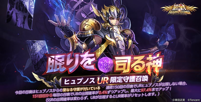 超高画質3DRPGスマホゲーム『聖闘士星矢 ライジングコスモ』限定召喚にURキャラ「眠りを司る神・ヒュプノス」が再び登場!カードめくりでオデッセウス限定スキン「医は仁術」を入手できます!