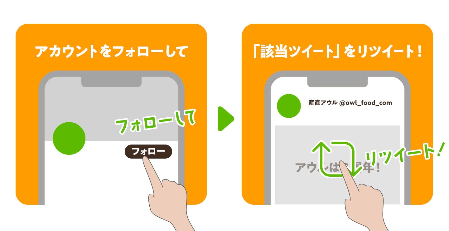 産直アウル公式アカウントをフォローし、該当ツイートをリツイート!
