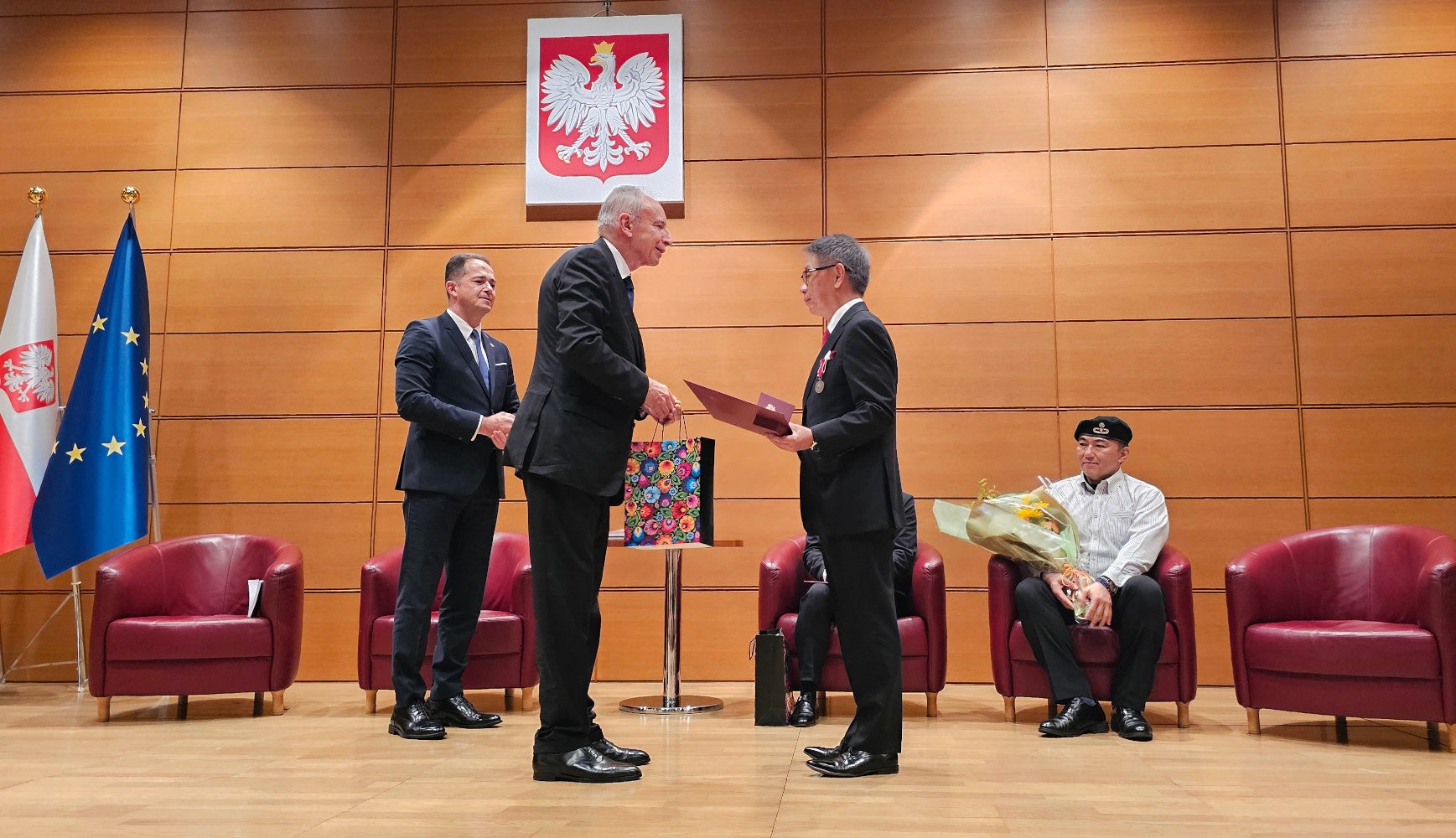 〔写真〕ポーランド共和国外務副大臣より記章を拝受する吉原