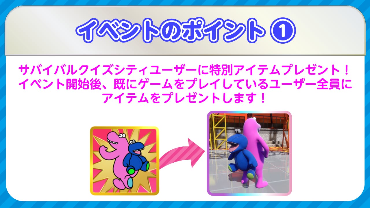 クイズの結果で勝ち組と負け組にわかれて戦う『Survival Quiz CITY おまつり編』にて、おまつりイベント「サバイバルクイズシティコラボまつり」が始まりました!今回のテーマはなんとサバイバルクイズシティそのもの。イベント期間中にランクマッチをプレイするともらえる”お祭りポイント”で、報酬をもらったりランキングを競ったり、ぜひこの機会にオンラインで集まって『Survival Quiz CITY おまつり編』のプレイをお楽しみください。