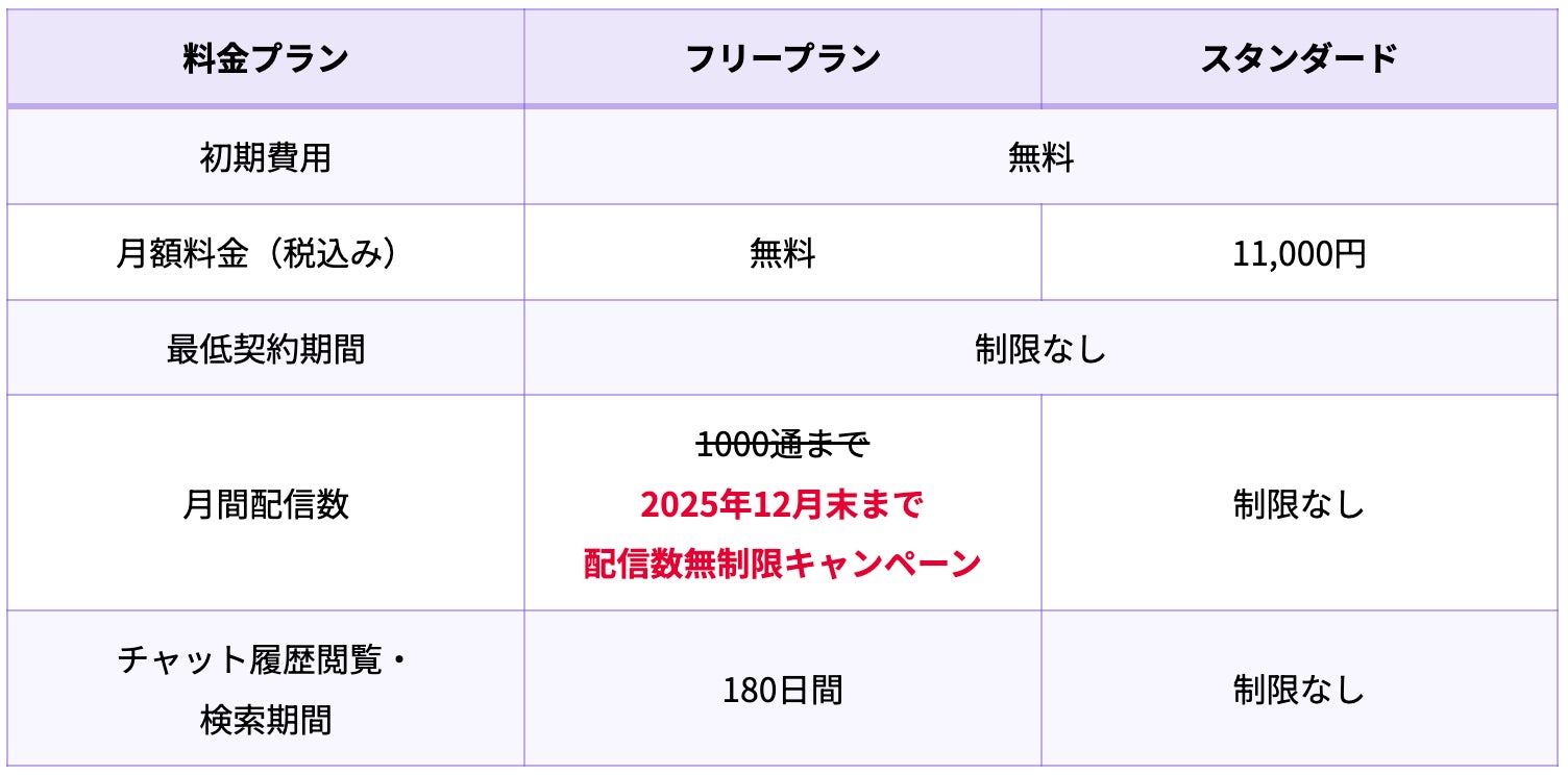 フリープランユーザーを対象とした配信数無制限キャンペーンを実施いたします。