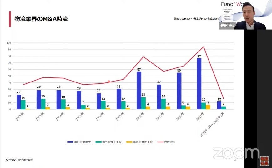 ロジスティクス・物流コンサルティングサービスを提供する船井総研ロジ株式会社(東京本社:東京都千代田区、代表:菅重宏、以下「船井総研ロジ」)は、事業譲渡や売却を検討し始めた売主を対象に、M&Aを成功させるポイントについて、事例を交えながら解説するYouTube Liveセミナーを2022年3月9日(水)に開催しました。
