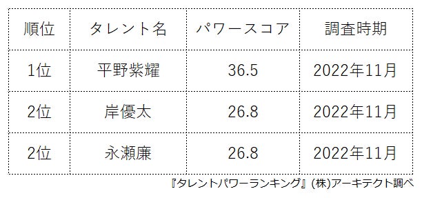 本ランキングは、2022年11月度に実施したタレント調査データ(一部過去実施データ)を利用し、タイトルに応じてランキング形式でまとめたものです。