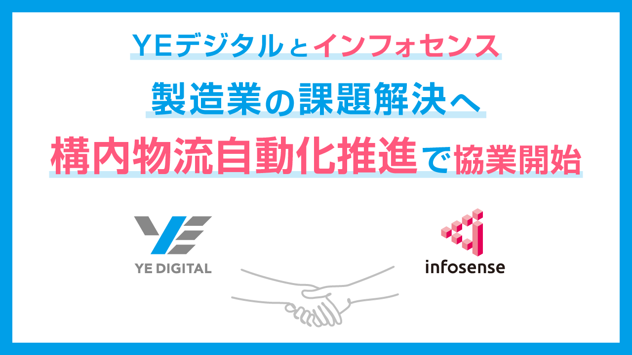 株式会社YEデジタル(本社:北九州市小倉北区、代表取締役社長:玉井裕治、以下 YEデジタル)と株式会社インフォセンス(本社:福岡市博多区、代表取締役社長:辛島信司、以下 インフォセンス)は、製造業向け構内物流の自動化促進を目的に、アライアンスを開始します。