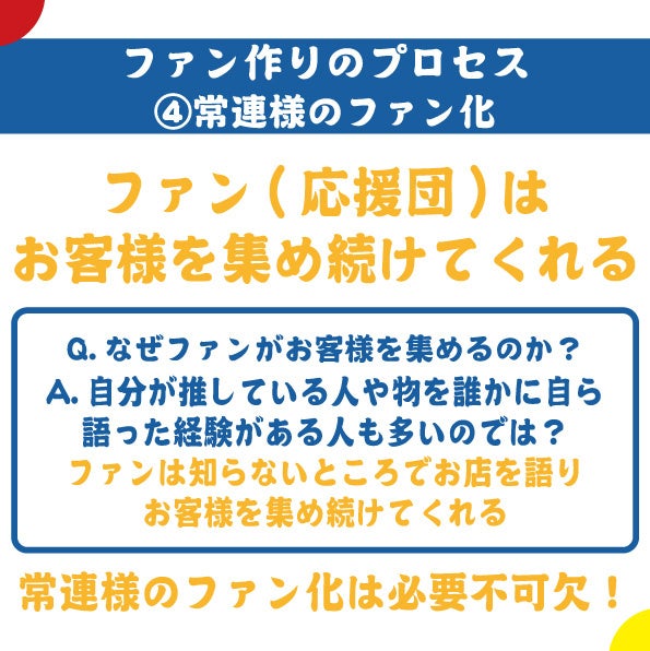「ファン(応援団)こそが、お客様を集め続けてくれる存在だ」と。