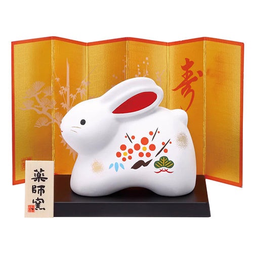 2023年干支、卯(うさぎ)の置物です。卯(うさぎ)が跳ね回る姿から「飛躍」「向上」の象徴として尊ばれてきました。「卯」が作物の繁茂を表していることから、豊穣・子孫繁栄のお守りとしても大変親しまれています。