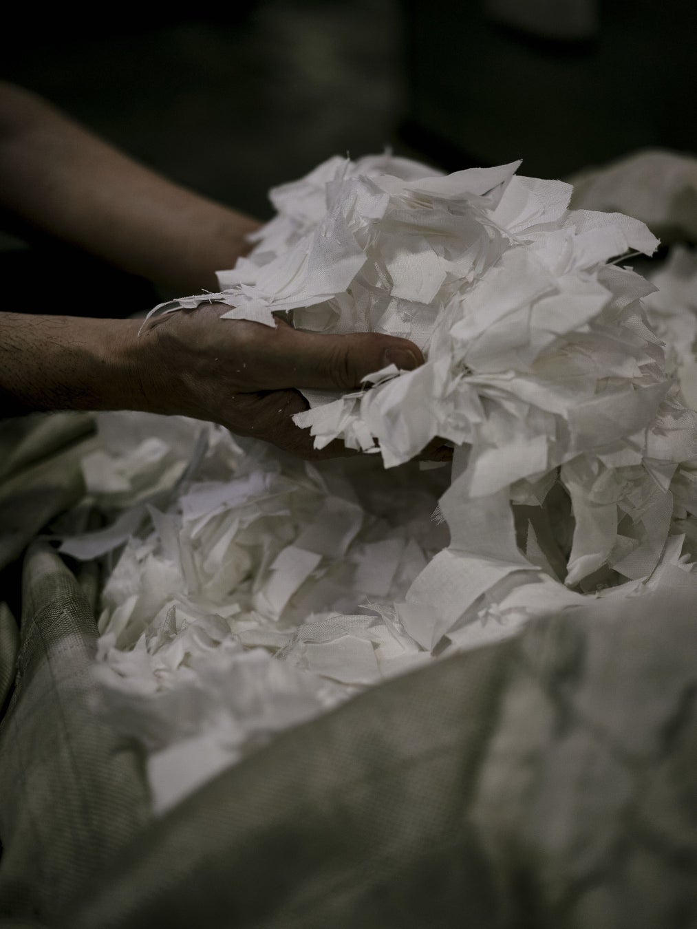 ネストローブでは、「裁断片」を粉砕して綿(ワタ)状に戻す「反毛」とうい技術を活用し、オーガニックコットンの綿(ワタ)と混ぜ合わせて紡績した「再生糸」で新たな製品に蘇らせる循環型プロジェクト「UpcycleLino(アップサイクルリノ)」に取り組んでいます。