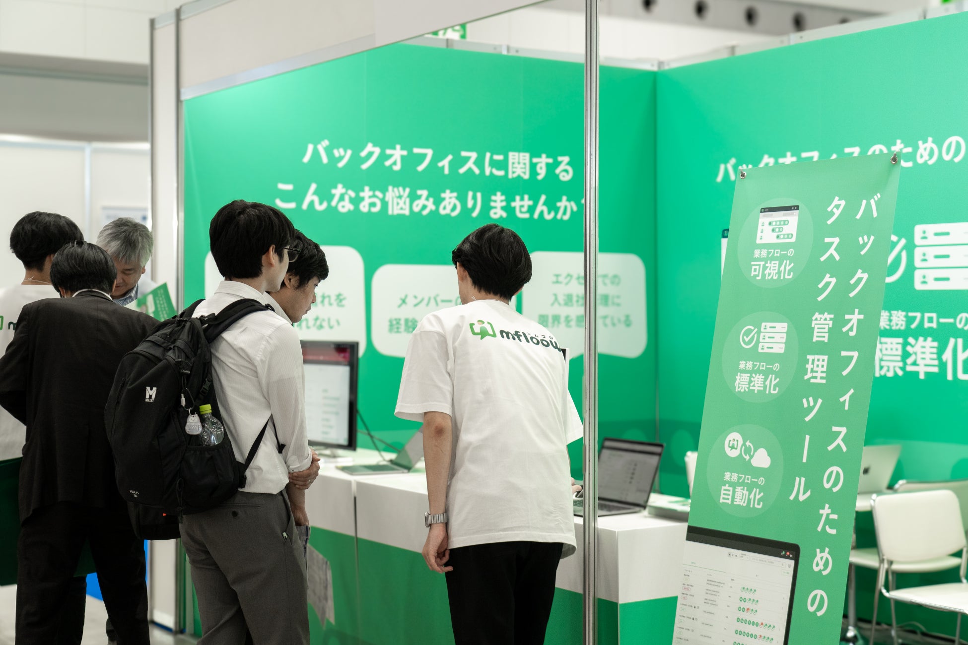 今回の展示では、「業務の自動化」をテーマに、mfloowがもたらす業務改善の具体例を実際の画面を見ながらデモ体験や事例紹介を通して紹介します。