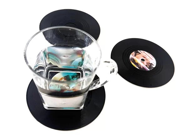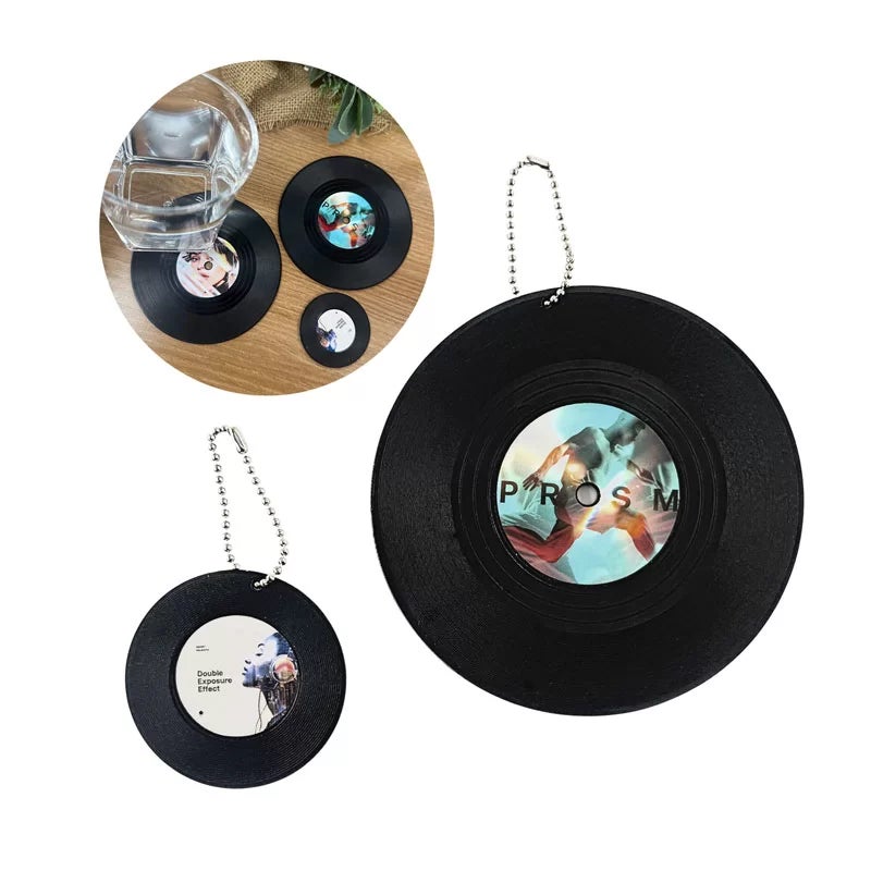 レコード盤を模したデザインが特徴で、中央部分にお好きなデザインをフルカラーで印刷可能。音楽イベントの記念品や、アーティストのグッズ、企業のノベルティとしても活用いただけます。