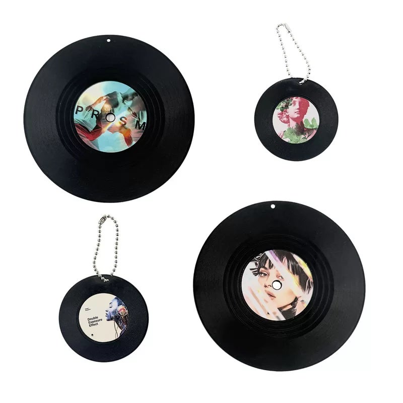 ME-Qで、レトロなレコード盤を模したオリジナルキーホルダーが1個から作成可能に!スマホから簡単にデザインでき、イベントやノベルティ、推し活グッズとしても最適です。