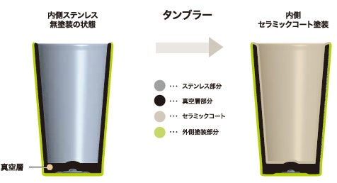 ステンレスタンブラー特有の「臭い」や「ざらざらとした口当たり」が苦手というお客様の声にお応えし、この度モカ・ブラック色のセラミックコートタンブラーを全店で販売開始いたしました。