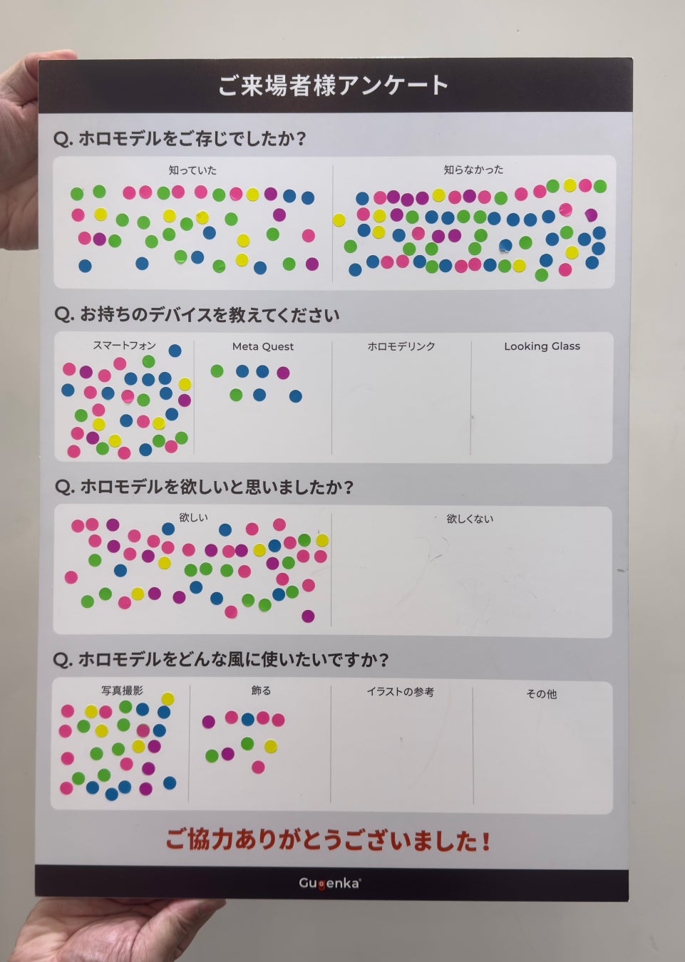 Gugenkaブースにて、来場者対象にホロモデルに関するアンケートを実施し、100%のユーザーから「ホロモデルを欲しい」との回答を得ることができました。
