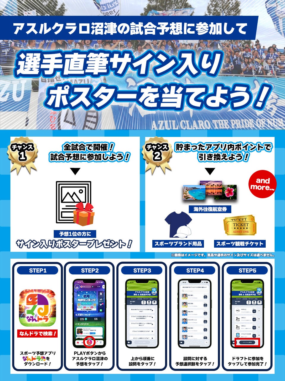 まもなく2025シーズン開幕!アスルクラロ沼津 試合展開&活躍選手予想をスポーツ予想アプリ「なんドラ」で今年も開催!