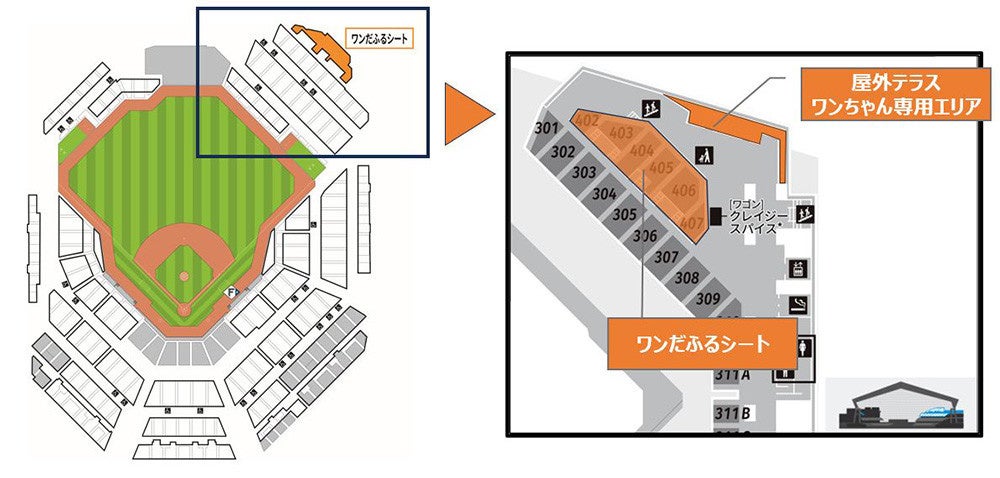 スタンド席で愛犬と一緒に試合観戦できる「ワンだふるシート」を、イベント日限定で販売いたします!