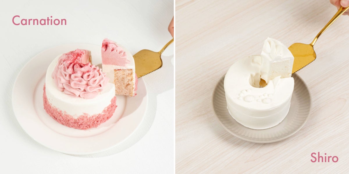 一方、『Carnation』は、カーネーションをモチーフにした華やかなシフォンケーキ。いちごのふわふわとした生地に、甘酸っぱいソースをしみ込ませ、中心にはコクのあるレアチーズクリームをたっぷりと詰めました。ミルキーなコクと爽やかな酸味が調和した、軽やかな口どけが特長です。