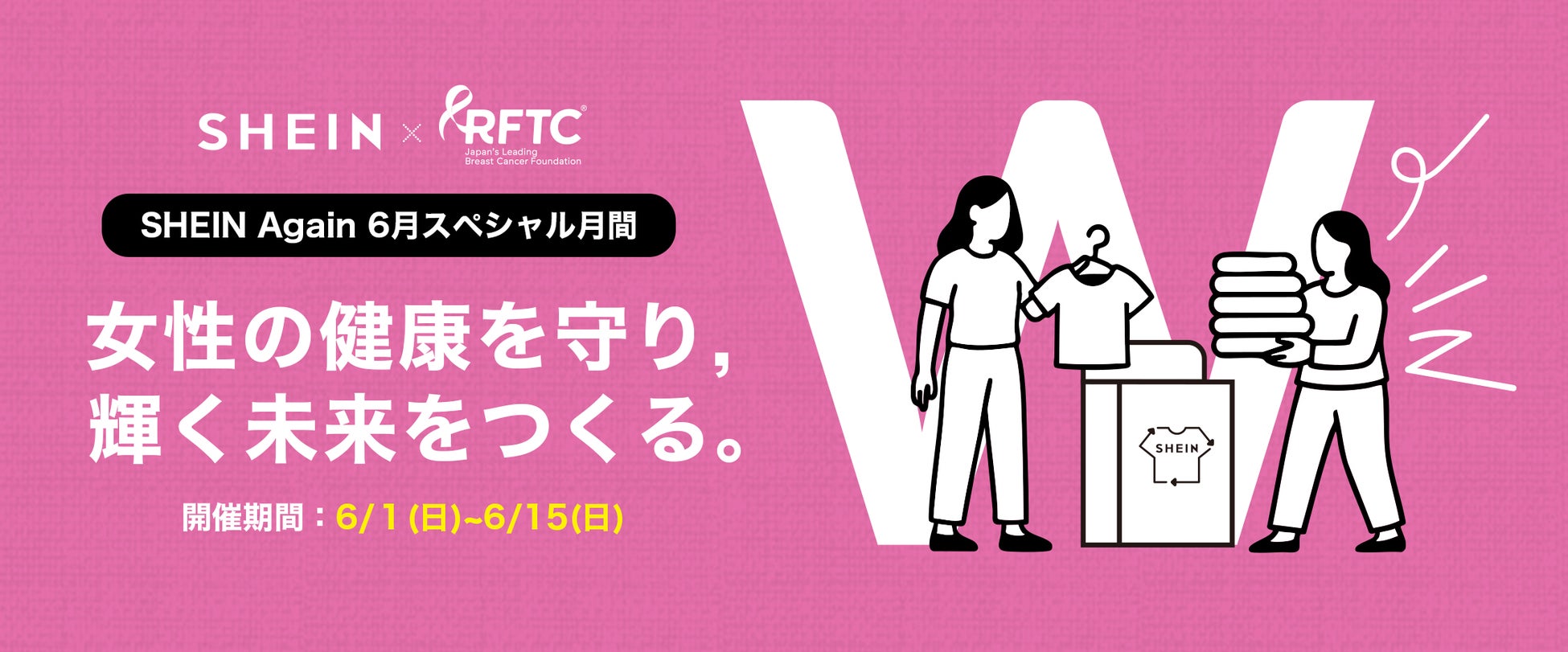 「SHEIN」は、2025年5月1日(木)~2025年5月15日(木)の期間に、古着交換・寄付キャンペーン第10弾となる『#SHEIN Again』を開催し、582名のお客様にご利用いただきました。好評につき、2025年6月1日(日)~2025年6月15日(日)に第11弾となる『#SHEIN Again』を開催します。また、SHEINはNPO法人RFTCと協働し、乳がんに関する講座を2025年6月24日(火)に開催します。