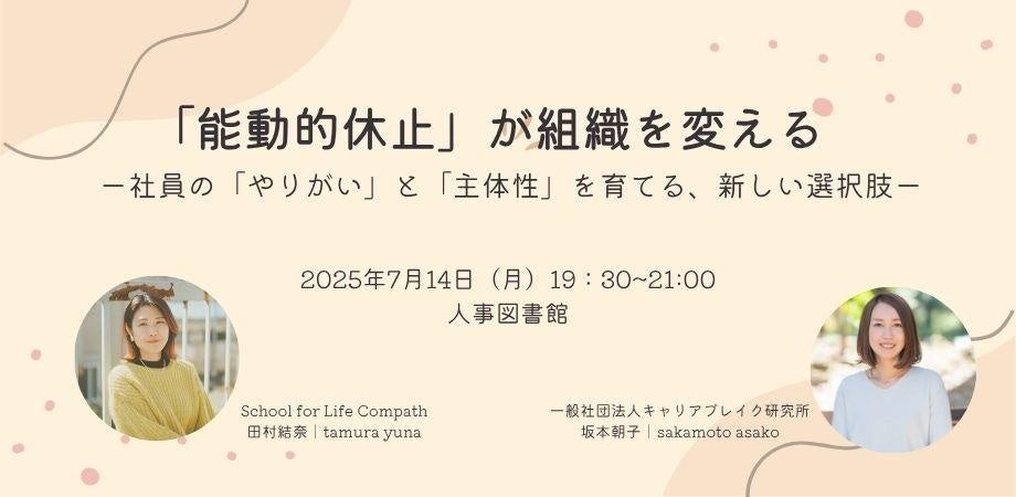 株式会社Trustyyle(本社:東京都中央区・代表取締役:吉田洋介)は、運営するコミュニティ「人事図書館」にて、2025年7月14日に『「能動的休止」が組織を変える ー社員の「やりがい」と「主体性」を育てる、新しい選択肢ー』を開催します。企業の経営者様、人事責任者様、マネージャー層の皆様、また人事・HR領域における新たな戦略に関心のある全ての方に、本勉強会へのご参加を心よりお待ちしております。