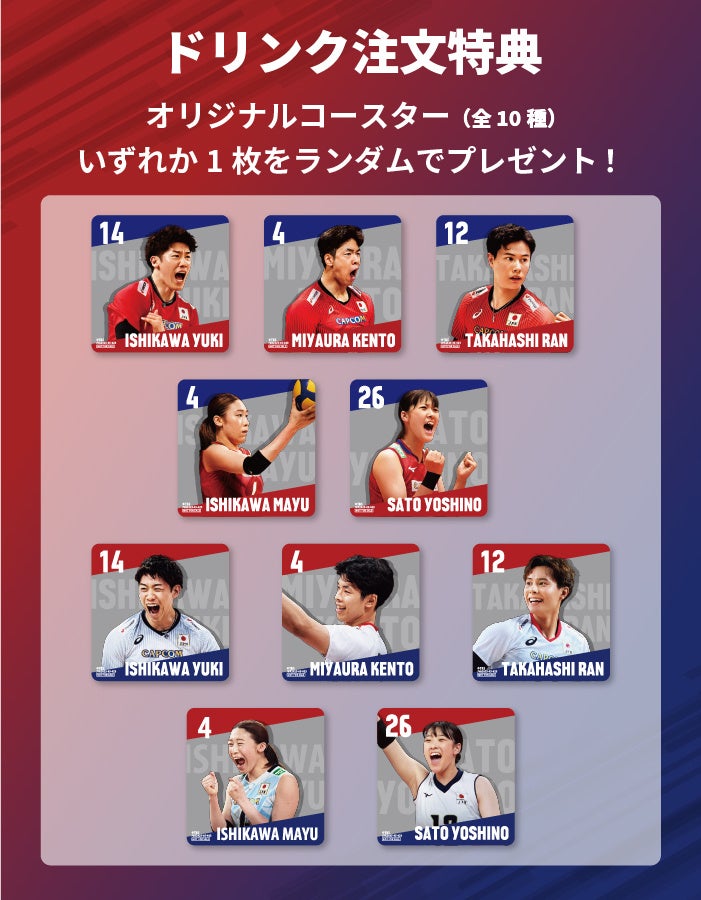 その他、カフェ先行販売オリジナルグッズや特典なども設け、バレーボール応援カフェを盛り上げます。