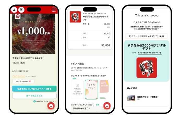 やまなか家公式オンラインショップにて、eギフトサービス『AnyGift』を導入