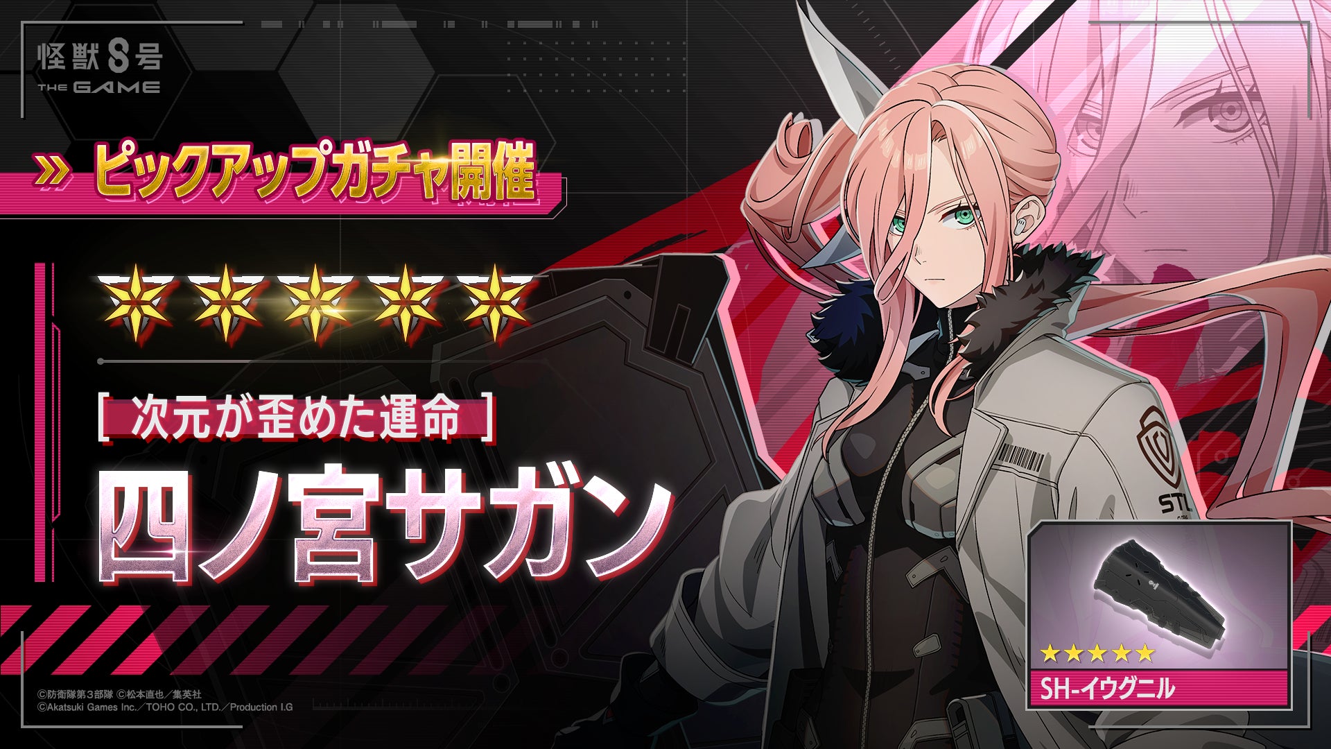 株式会社アカツキゲームス(本社:東京都品川区、代表取締役:戸塚 佑貴、株式会社アカツキ100%子会社)は、東宝株式会社(本社:東京都千代田区、代表取締役社長:松岡 宏泰)、株式会社プロダクション・アイジー(本社:東京都武蔵野市、代表取締役社長:和田 丈嗣)との共同プロジェクト『怪獣8号 THE GAME』において、ゲームオリジナルキャラクター「四ノ宮サガン」の実装及び、「メインストーリー3章」の公開をお知らせいたします。