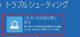 Step2:「トラブルシューティング」から「このPCを初期状態に戻す」をクリックします。