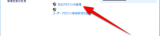 Step2:「ユーザーアカウントの変更」から「別のアカウントの管理」をクリックします。