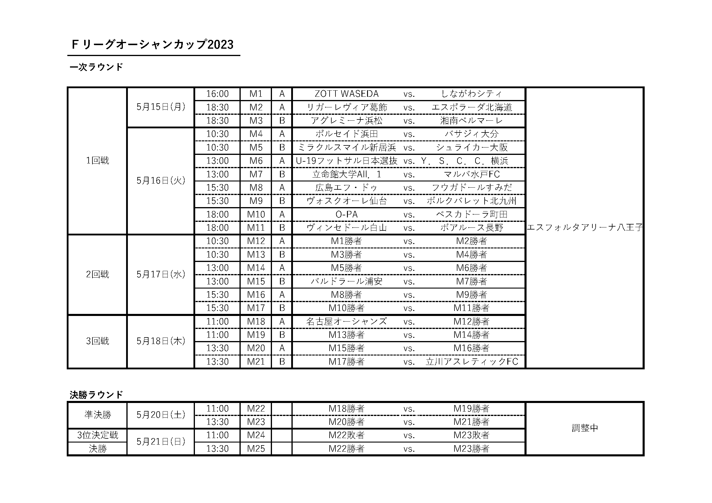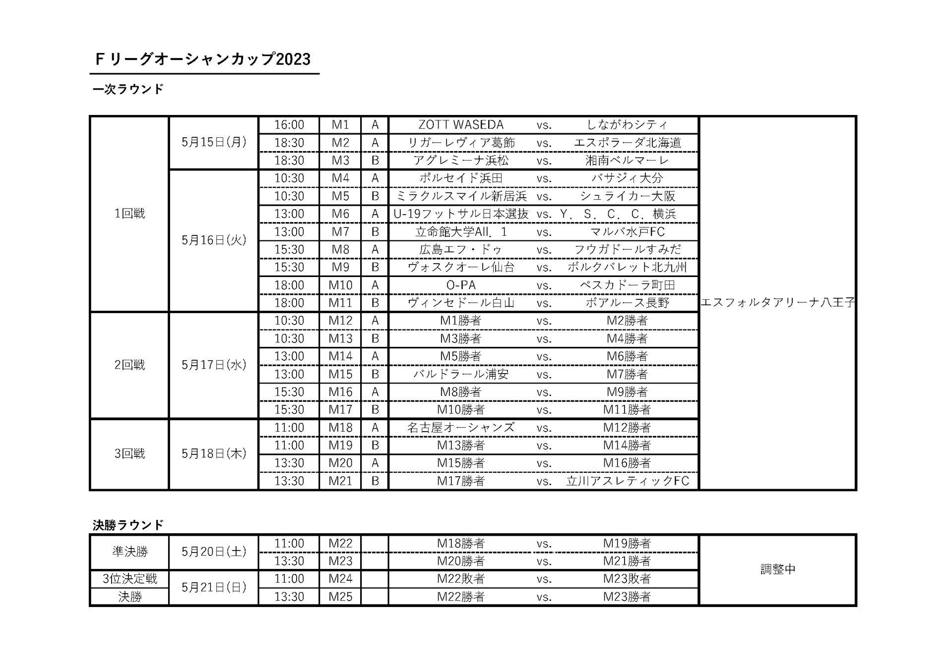 【Fリーグオーシャンカップ2023】開催概要・組み合わせ 決定のお知らせ