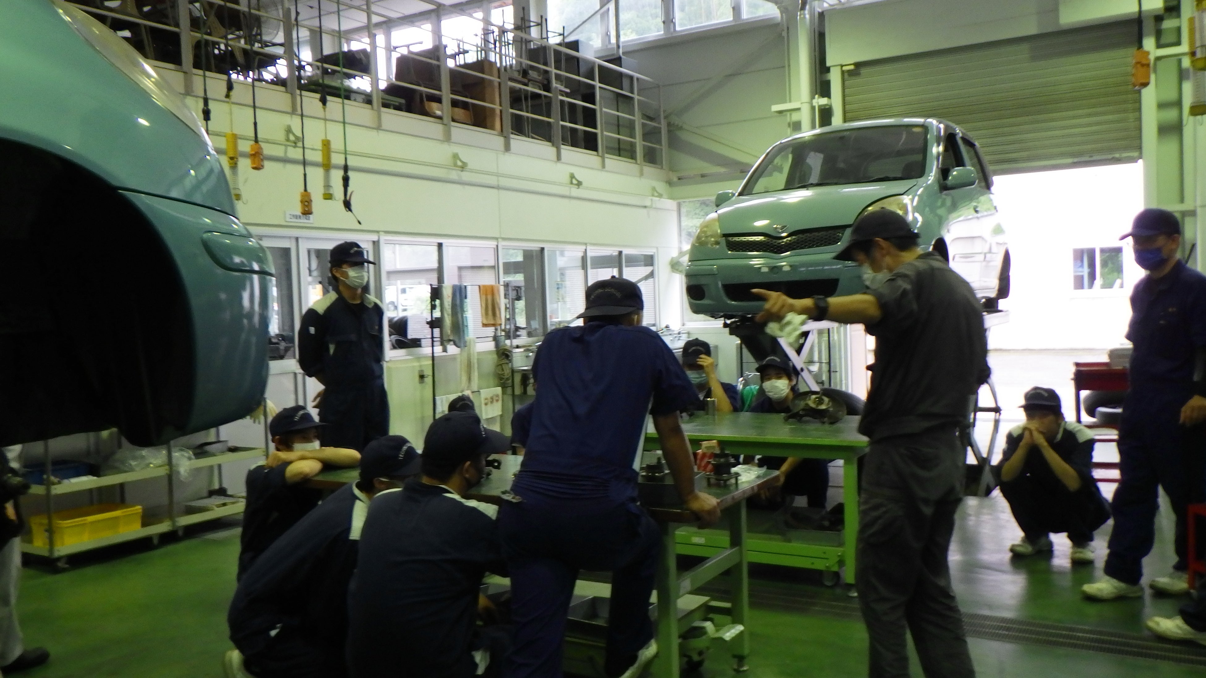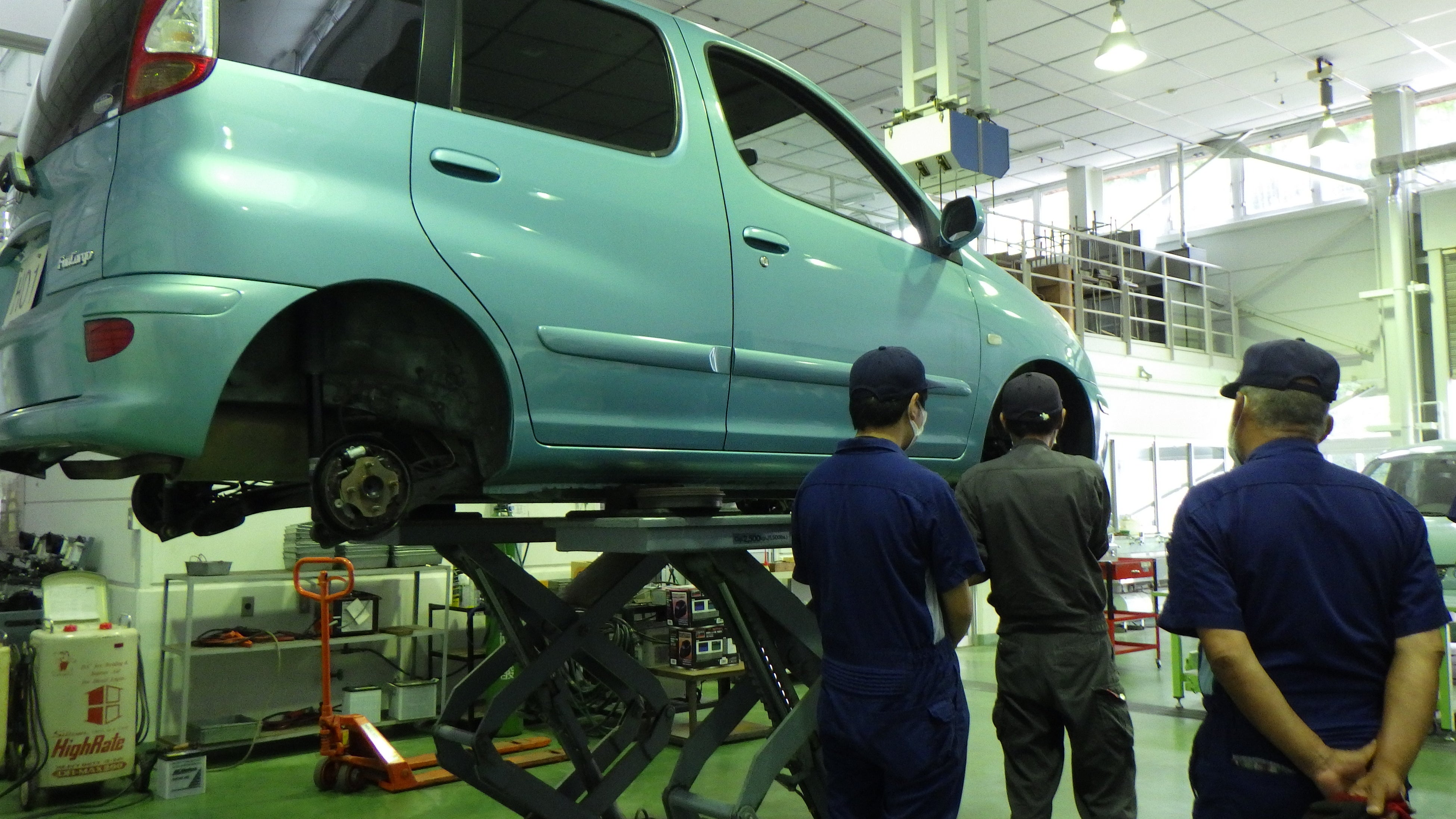 トレーニングは自動車整備の基礎からはじまり、車検整備、部品交換作業、故障診断やEV車、ハイブリッド車などの最新技術まで、実習主体のカリキュラムでわかりやすく学習します。