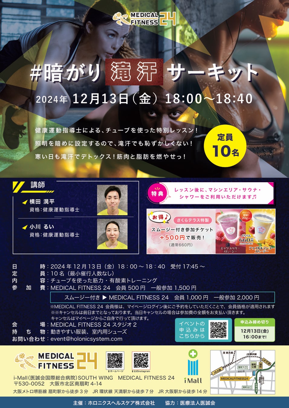 お申込み:https://medicalfitness24.hacomono.jp/reserve/space/NYZ98JY9