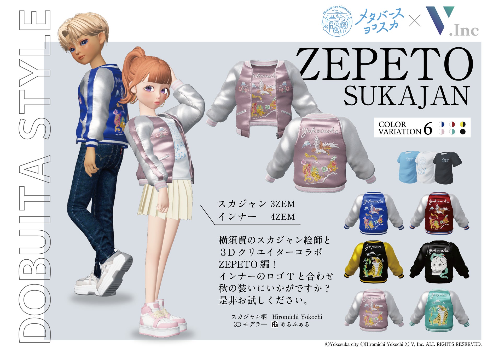 これまでメタバースヨコスカは「VRChat」をメインに展開してきましたが、このたび、横須賀市としては初進出となるメタバースプラットフォーム「ZEPETO(ゼペット)」にて、横須賀の名産品である「スカジャン」のアバター向け3Dデータをリリースします。