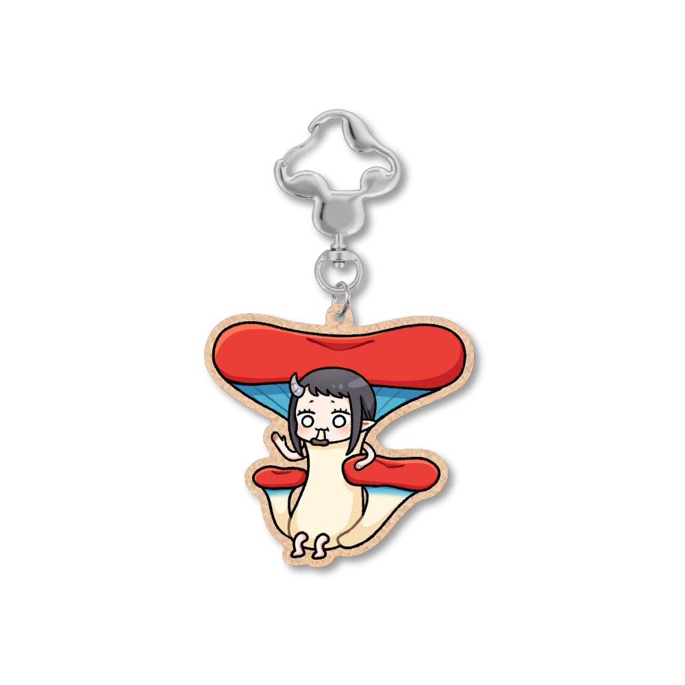 フクロタケあここのウッドキーホルダー。ナスカンはきのこ型!
