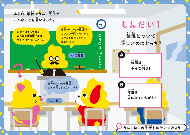 うんこねこの日常⽣活を通して体温について問う構成になっています。