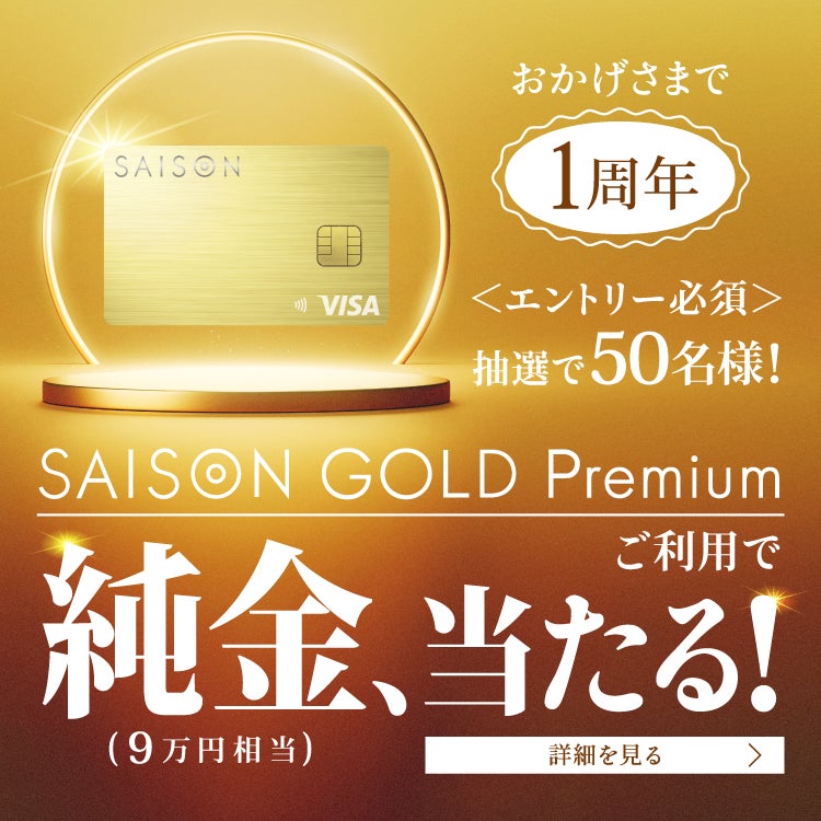 【おかげさまで1周年!】SAISON GOLD Premium(セゾンゴールドプレミアム)リリースから1周年を記念して「純金(9万円相当)、当たる!」キャンペーンを開催